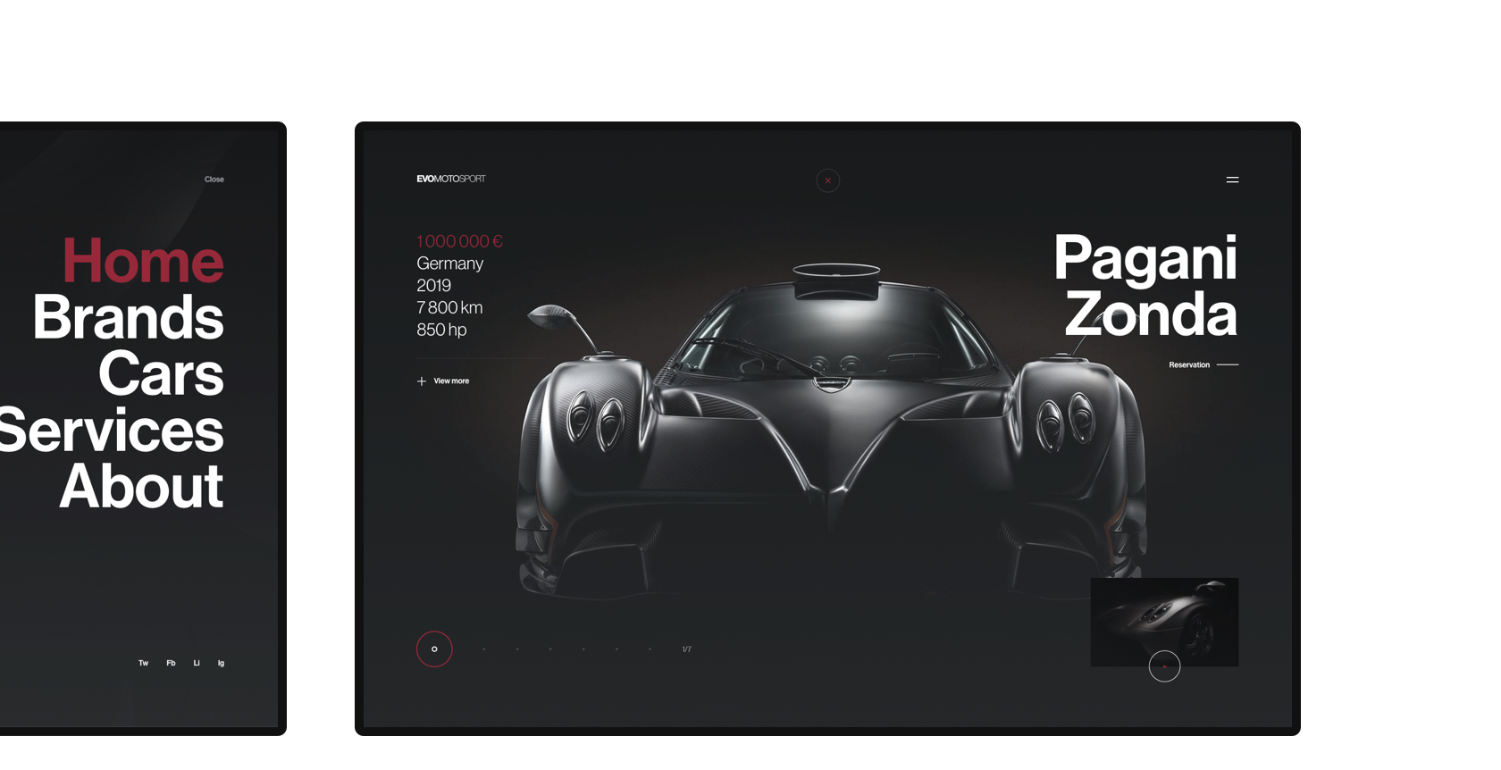 We realized this project for a client from Italy who deals with distribution of luxury cars. The client had two main requirements, he wanted to reflect the uniqueness of luxury and sports cars to the web environment and also meet the deadline of his conference where the new website wanted to introduce his friends and clients. We started research and created a moodboard, where we presented our visions and preconceptions to his new website, created a web structure and wireframes, from which we managed to create a visual concept, which we then elaborated into the final state. Our partner studio Rascasone, with whom we cooperate, took care of the development of the website.